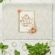Köksduk som lyder ”Ge tack med ett tacksamt hjärta” i ett handskrivet teckensnitt, omgivet av en modern pumpa och blad glitter ram. Dukens bakgrund har ett subtilt blad- och ekollonsmönster.