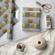 Festive Thanksgiving Fall Höst med papper rulle av en liten orange pumpa med ett fint högt skaft och dekorerat med ett proaktivt Turkiet i mitten, grönten och brunt löv, och pumpdekaler applicerar sitta på ett trädäck med svarta räler och träd dimmigt i bakgrunden. Med talesättet, Ge tack. Snyggt papper för en speciell födelsedag, en Fall eller Thanksgiving-gåva till familj och vänner. Originalfotografi av TamiraZDesign. Besök Store om du vill se fler unika objekt www.zazzle.com/tamirazdesigns