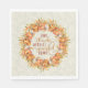 Napkin som läser: "Ge Tack med tacksam hjärta" i ett handskrivet typsnitt, omgivet av en höstens lämna och pumpkrans. Bakgrunden har ett subtilt löv och ett horn mönster.