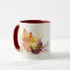 Thanksgiving mugg beskriver en enkel höstfärgskonst med ett fallande golden löv. Den har inspirerande citattecken, "Ge tack vare Herren" som hämtats från en del av Bible Verse Psalm 106:1.