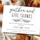 Fira Thanksgiving med dina nära och kära med denna moderna och elegant inbjudan. Inbjudan innehåller "Samla och ge tack" från ord, som har en vit bakgrund. Perfekten till inbjudan till dina gäster till en minnesvärd kväll av mat, roligt och stipendium.