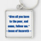 Ge till stackars Följ mig blått Jesus citat Fyrkantig Silverfärgad Nyckelring