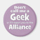 Kalla mig inte Geek, annars anmäler jag dig till alliansen. Låt människorna runt omkring er veta vad ni går in i och att ni är redo att försvara det.