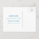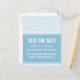 Den här eleganten Geek Chic Binary Code Save the Date Postcard in Light blue är perfekt för paret som har flyttat ut ur betastadiet i sitt förhållande och är redo att ge sig in i ett gift liv! Familjen och vännerna kommer att få detta mycket minnesvärda meddelande från kärlek! Med den här generiska åtgärden sparas datumdesignen med en något färgad binär kod numrerad bakgrund och enkelt prickad gräns. Enkel att anpassa, lägg bara till information om bröllop i de medföljande utrymmena. Klicka på knappen "Anpassa" för att hitta ytterligare anpassningsalternativ.