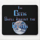 Ord av med Geek ska ärva jorden i ett stil-datortypsnitt i blått med rött kontur för att framträda. Påstående ställs mot ett häpnadsväckande foto av jorden.