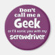 Kalla mig inte en Geek, annars kommer jag att sonika dig med min skruvmejsel. Låt människorna runt omkring er veta vad ni går in i och att ni är redo att försvara det.