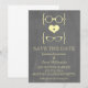 Quirky och chic Geeky Glasses Chalkboard Spara datum meddelande i gult med ett sött hjärta som flankeras av två par nörda ögonglasögon, ett manligt par och ett gigantiskt par som representerar stommen och bruden på en kritbordsbakgrund. Det här offslaget sparar datumet när inbjudan är perfekt för att tillkännage ditt gästande bröllop! Enkel att anpassa, lägg bara till informationen om bröllop i den fält som tillhandahålls. Klicka på knappen "Anpassa" för att hitta ytterligare anpassningsalternativ.