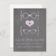 Quirky och chic Geeky Glasses Chalkboard Spara vykortet för datum på lila med ett sött hjärta som flankeras av två par nörda ögonglasögon, ett manligt par och ett giglipperpar som representerar stam och brud på en krita med en stilbakgrund. Det här offslaget sparar datumet för vykortet är perfekt för att tillkännage ditt magiska bröllop! Enkel att anpassa, lägg bara till informationen om bröllop i den fält som tillhandahålls. Klicka på knappen "Anpassa" för att hitta ytterligare anpassningsalternativ.