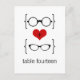 Quirky och chic Geeky Glasses Bröllop Bordsnummer Postcard med ett rött hjärta täckt av två par geekyeglass, ett manligt par och ett giglipperpar som representerar stam och brud. Det här sofistikerade bord-kortet är perfekt för ditt nervösa bröllop! Enkel att anpassa, lägg bara till den personlig du väljer. Klicka på knappen "Anpassa" för att hitta ytterligare anpassningsalternativ.