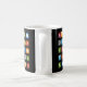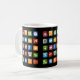 Geeky kaffe mugg med social-mediaappikoner. Lustigt presentkort för datorprogrammerare, gadget-freaker och teknikentusiaster. Färgfull teknik, smartphone skärm-design.