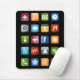 Geeky smartphone-appikoner är musmatta. Lustigt presentkort för datornördar och freaker för teknik. Mobil mobil utskrift.
