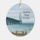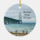 Julprydnad med kanadensisk gäss i stranden på en dimmig och regnig dag på Mackinac-bron från Sjö Huron-sidan. Detta ligger i Mackinaw City Michigan. Tittar du fler utskrifter eller produkter? Besök gärna min butik: http://www.zazzle.com/timelessmomentsphtgy Det här fotot togs av Jennifer White med Timless Moments Photography. Alla bilder är upphovsrättsskyddade © Timless Moments Photography.