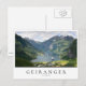 Fotovykort från fjord Geirangerfjord träffade Geiranger-staden och -bergen i Norge med ett vitt kant och texten "Geiranger, Norge".