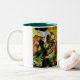 Geisha med oliv grönt originalkonst av kimono Två-Tonad mugg