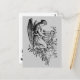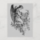 vintage teckning av en ängel som spelar hamnen omgiven av löv. En vacker svart och vit illustration av att angeliska figur går ner på en läskig mark och ett musikinstrument.
