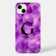 Telefonfodral i ett stenblock mönster, med ett svart onyxutseende monogram - djup lila ametyst i en lättare eller chid matrissten