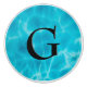 Björnsten i stenplattan mönster - blå Larimar eller blå pektolit, även kallad "Atlantis stone", i ett silke mönster i mjuk himlar blå och akvarig och ett anpassade monogram, i ett Deco-typsnitt, med svartonyx utseende