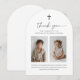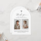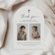 Tacka era gäster för att de kom till era barns gemensamma dop med denna design, med 2 av dina egna foton med ett vackert typsnitt duo och ett arkformat kort.
