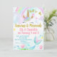 Letar du efter en söt födelsedagsinbjudan med 2 teman? Denna gemensamma födelsedagsinbjudan är lämplig för två syskon eller vänner eller kan användas för ett enda barn. Designen har ett enhörningsansikte och regnbåge samt en sjöjungfrustjärt, snäckor och fisk. Denna barns gemensamma sjöjungfru och enhörning födelsedagsinbjudan är redo att anpassas.