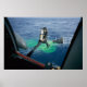 En Frogman från en återställningshelikopter till vatten för att bistå vid Gemini XII-återvinningsarbetet.