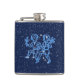 Kolv i zodiaksymbolen för Gemini i mjukt blått silver, överdragen med stjärnorna i konstellationen, mot bakgrund av himlar, djup midnattblått