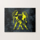 Härliga Gemini i gult med en universumbakgrund som göras i photoshop. Bakgrunden kunde tas bort, så det är endast zodiacen undertecknar.