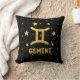 Anpassningsbar dekorativ kudde för "Gemini" med guldzodiaksymbol, guld-stjärnor och svart bakgrund.