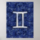 Gemini Zodiac Symbol Blue Digital Camouflage Poster