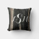 Lägg till ditt monogram till detta vackra moderna dekorativ kudde. Bilden som visas på kudden fångar en svart och vit gemen. Lodrät rand av denna handjur är formar av vita kristaller och svart sten. Monogrammet visas mot strimlad bakgrund på kuddens framsida. Snabbt och enkelt anpassa sig till skärm på ordern.