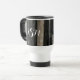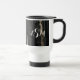 Den moderna morgonens pendlande resemugg har svart och vitt lodrät rand skapat av en gemstone mönster. Det här grammofonet fångar vita kristaller och svart sten som är som bakgrund för ditt monogram. Initialer visas på båda sidor om resan stil mugg i vitt skript och kan enkelt och snabbt vara personlig.