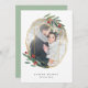 De geometriska helgdagskorten i eleganten har din favoritfotouppsättning inuti en gemstone-inspirerad ram i faux guld-folie, accentuerad med grönt vattenfärgslöv och röda bär. Anpassa med namn och en kort-anpassningsbar som Julhälsningar (visas med "kärlek och glädje") och lägg till ytterligare två foton på baksidan tillsammans med året.