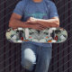 Skina på hjul! Skateboard-däcket har en djärv och livfull abstrakt design med glandiga former i jewelliknande färg mot en texturerad bakgrund. Perfekt för skater som vill ha en styrelse som är lika öga-fångstande och unik som stil.
