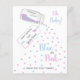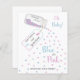 En budgetblå och rosa kärlek hjärtkonfetti-gender visar inbjudan. Utformningen består av ett dekorativt glas burk som läser homemat med kärlek. Burk är fyllt med elegant blå och rosa kärlek hjärtformade konfetti, som faller under frasen blå eller rosa vad för tänka? Burk-etiketten är dekorerad med en rosa och blå baby fot och läser Baby din lilla gender för efternamn.