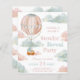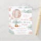 En baby-gender visar partiinbjudan. På vit bakgrund visas en luftballong för rosa av elegant som bär en blå baby-lampa. Himlar är dekorerat med elegantens rosa och molnen av blå guld-gnistra. Anpassa genom att lägga till din fullt-händelse och kontaktinformation till framsidan och baksidan.