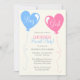 En gullig gender avslöjer inbjudan som presenterar hjärtformade ballonger i rosor och blått på en elfenbenbakgrund. Personifiera lätt för ditt party.