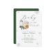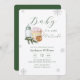 Cute adorable modern elegant winter baby shower theme, Holiday baby shower theme, design feature watercolor baby bottle, marshmello s'more mug, cookie, winter tree, silver snowflake and script calligraphy typography "Baby it's cold outside" in green color theme. you can customize your own unique text and color.