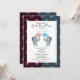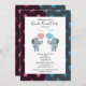 Är det en pojke eller flicka? Inbjudan visar era vänner och familj med dessa inbjudningar till personlig för gender party med illustration av söta små elefanter som håller rosa och blå luft-ballonger, på sömlösa mönster med stjärnor