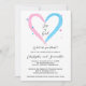Elegant, enkel, gender visar inbjudan till babydusch med oljemålningens rosa och ljusblå penseldrag som bildar ett vackert hjärta på elegantens vita bakgrund. Du kan läsa frasen "pojke eller flicka" i en modern kalligrafi.