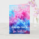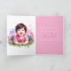 Cute gender visar kort för familj och vänner. Vad kommer det att bli? En pojke eller flicka? Rosa eller blå rök på framsidan. "Det är en tjej som ska vara på (fyll i datum)" och en bild i en asiatisk flicka.