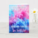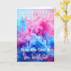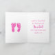 Cute gender visar kort för familj och vänner. Vad kommer det att bli? En pojke eller flicka? Rosa eller blå rök på framsidan. Inuti finns en tjej och rosa fotavtryck.