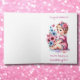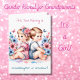 Genderna avslöjar kort. Låt dina föräldrar veta att de kommer att bli morföräldrar till en liten flicka! Fardotters avslöjande kort. Söt vattenfärgad illustration av lite flicka sitta i rosa blommor med fjärilar som flyger runt henne.