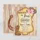 Boot eller bows gender avslöjar cowboyinbjudan till party budget. Vattenfärgad träbakgrund, vintagens etikett med cowboystövlar och filthattar.