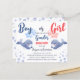 Pojken eller flickan baby val med stjärnballonger gender avslöjar party budgetinbjudan.