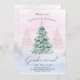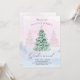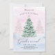 En festinbjudan visas i en festlig gender i baby. Julens helgdag har en vinter-vinter-scen med en Julgran dekorerad med blått och rosa.