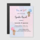 För en modern boho stil babydusch avslöjar gender party. En blå, rosa, vit, vattenfärgad bakgrund och två nallar med ballonger. Anpassa och lägg till information om namn och party.