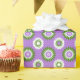 Wrapping paper with a seamless modern geometric flower pattern in the colors of the genderqueer pride flag; a purple, white, and green queer pride design