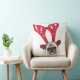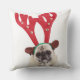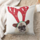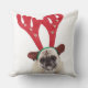 Generad tittar mops som ha på sig renhorn på kudde