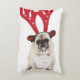 Generad tittar mops som ha på sig renhorn på prydnadskudde