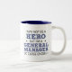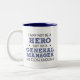 Jag kanske inte är en hjälte, men jag är en generaldirektör som är så nära humoristisk ord-konst i sans-serif och doodle kor-hatch-teckensnittsskrift i svart och mörk blått.