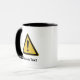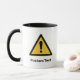 Triangle shaped yellow warning sign with exclamation mark. Custom text on both sides.